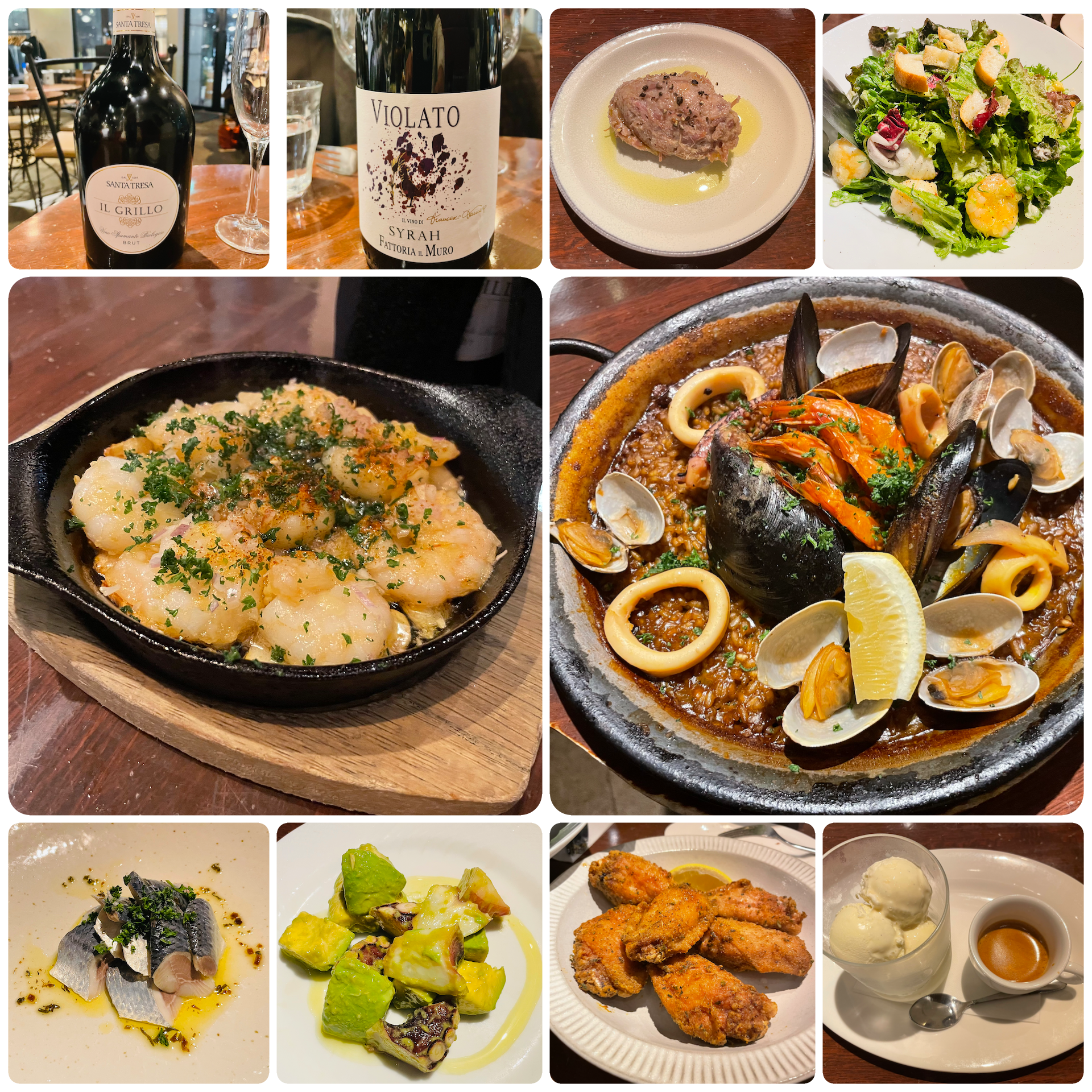 来週3/26はいよいよスプリングフェスティバル初日、朗読劇本番です。3/21、16時から19時までお稽古してお腹ぺこぺこ、事務所近くのイタリア街にある【MIRE FIORE】でお食事しました。スパニッシュイタリアンのような隠れ家的なワインバルで、素敵なお店です。最初にスパークリングワインをボトルで頼み、イワシのマリネ、アボカドとタコのサラダ、海老のアヒージョ、リエット、アボカドとエビのシーザーサラダなどを次々に平らげていき、その後は、魚介のパエリア、スパイシーチキン、そして赤ワインのフルボトルを追加オーダー。デザートにはアフォガートを頼み、大満足のディナーとなりました。英気を養ったので、3/26は観に来て下さるお客様全員に楽しんでいただけるよう、全力で演じ切ります!